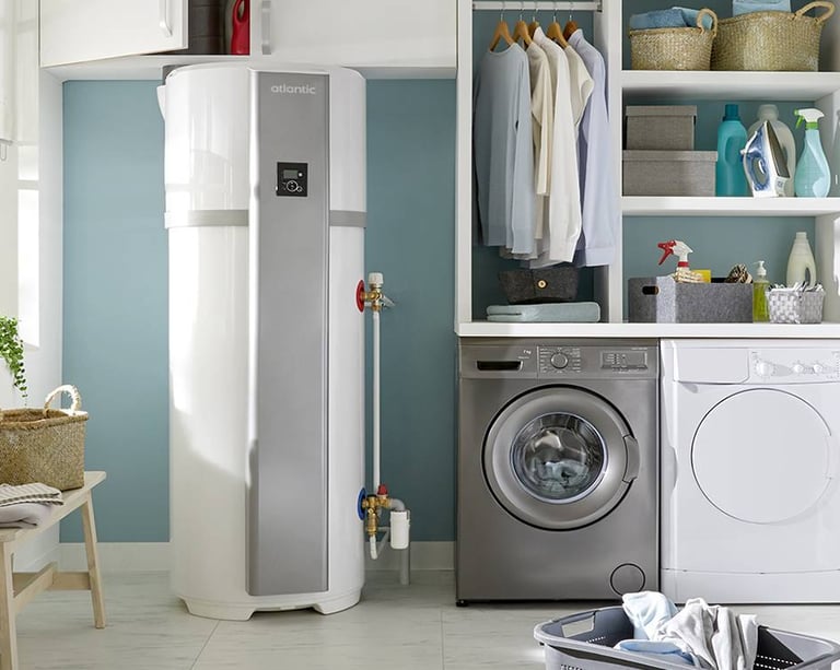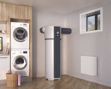 Le ballon thermodynamique est une solution performante et durable pour produire de l’eau chaude sanitaire (ECS) en consommant jusqu'à 4 fois moins d’énergie qu’un chauffe-eau électrique classique. Il fonctionne sur le principe de l’aérothermie, récupérant les calories présentes dans l’air pour chauffer l’eau.